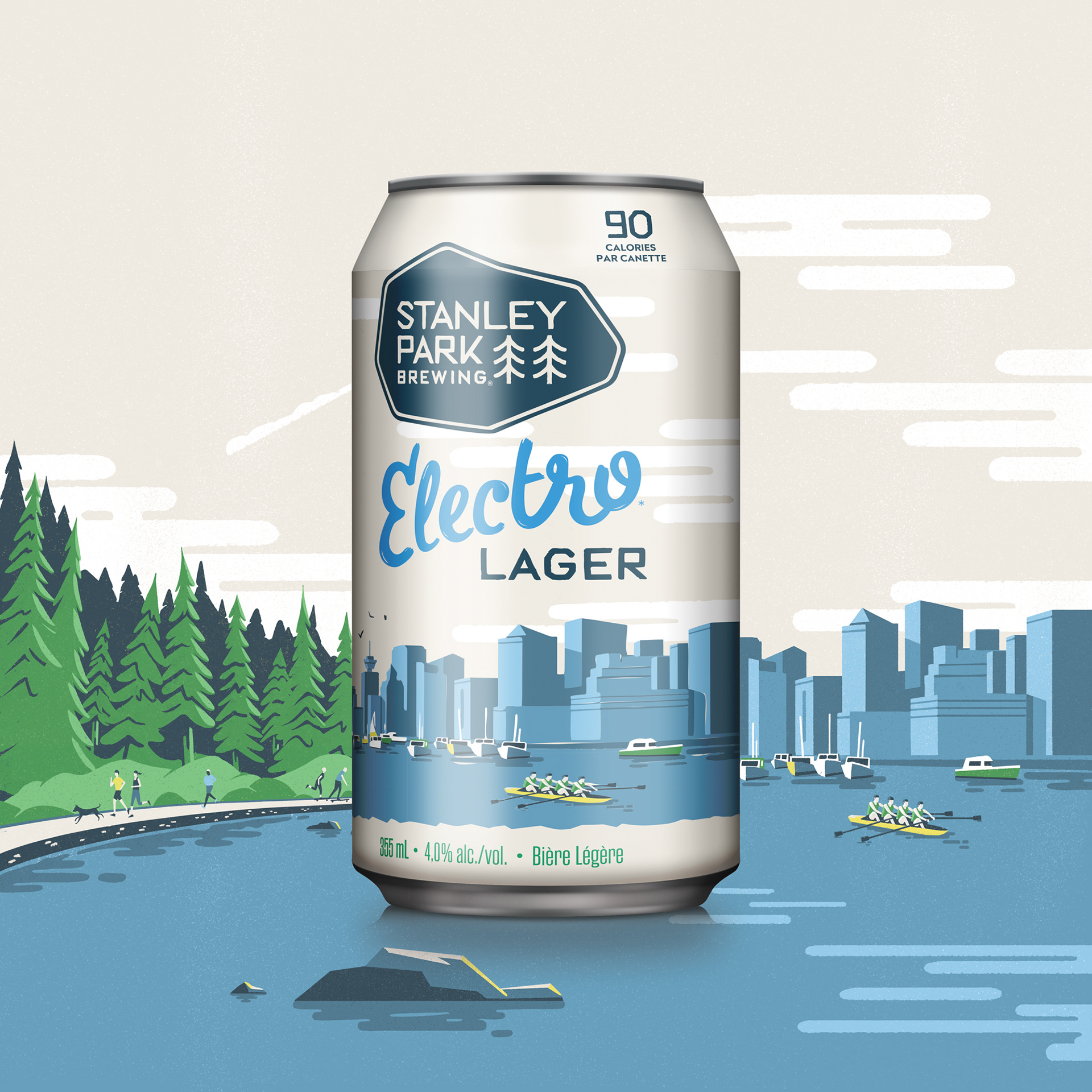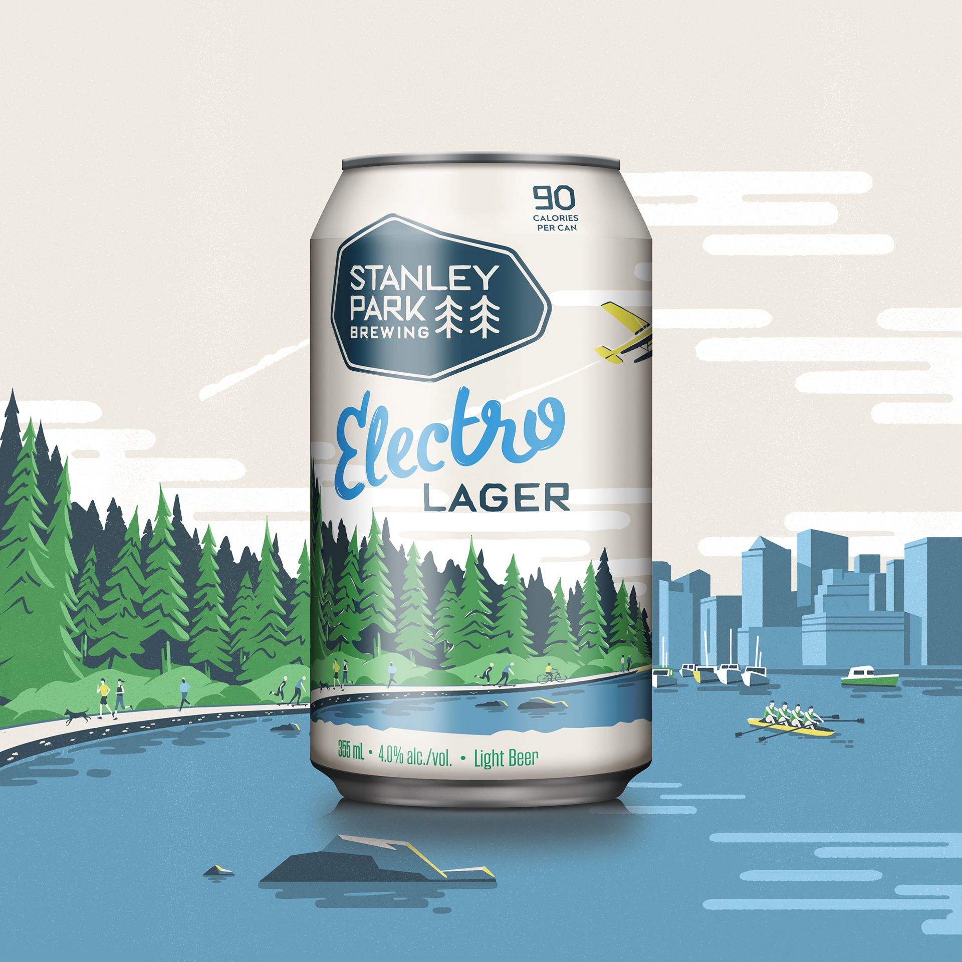 Packaging artwork for Electro Lager, a new addition to the Stanley Park Brewing range.